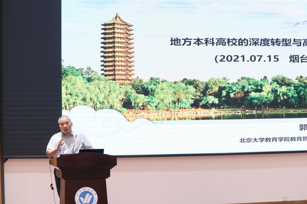 7月15日上午,北京大学教育学院博士生导师郭建如教授在三教六楼报告厅为我校中层以上干部、主任教授、教研室主任、以及学科带头人、教师代表等作了题为“地方本科高校的深度转型与高质量发展”的学术报告。校长于光辉教授、全体校领导参加了报告会,报告会由副校长苏春景教授主持。