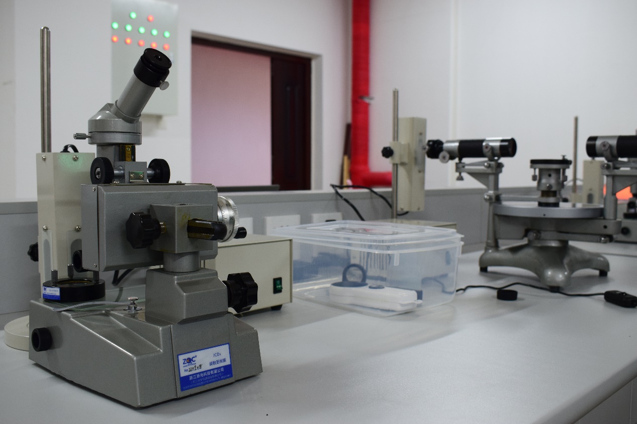 光学实验室建筑面积120平方米,仪器设备50套,浙江光学JJY1’- A型读数显微镜与JCD 3型分光计。可开出利用牛顿环测曲率半径实验、劈尖干涉实验、分光计的调整实验、三棱镜棱角测量实验与光栅衍射实验,共5个基础性光学实验。现主要用于大学物理实验课程的教学,并为科学研究和科技创新提供实验条件。