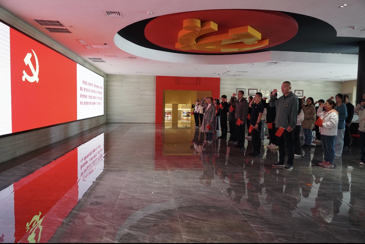 在讲解员生动的讲述下,全体党员沉浸式回顾了胶东地区的革命历史。党员们通过观看丰富的历史资料和情景演绎,深刻感受到了中国共产党在不同历史时期带领人民克服困难、取得胜利的艰辛和伟大的革命精神。展览涵盖了胶东地区的屈辱与抗争、革命斗争、社会主义革命和建设、改革开放以及中国特色社会主义新征程等重要历史阶段。参观结束后,党员们在党旗前庄严宣誓,回顾入党宣誓时的庄严承诺和坚定决心。随后全体党员在陈列馆门前共唱红歌,表达对祖国的热爱之情。