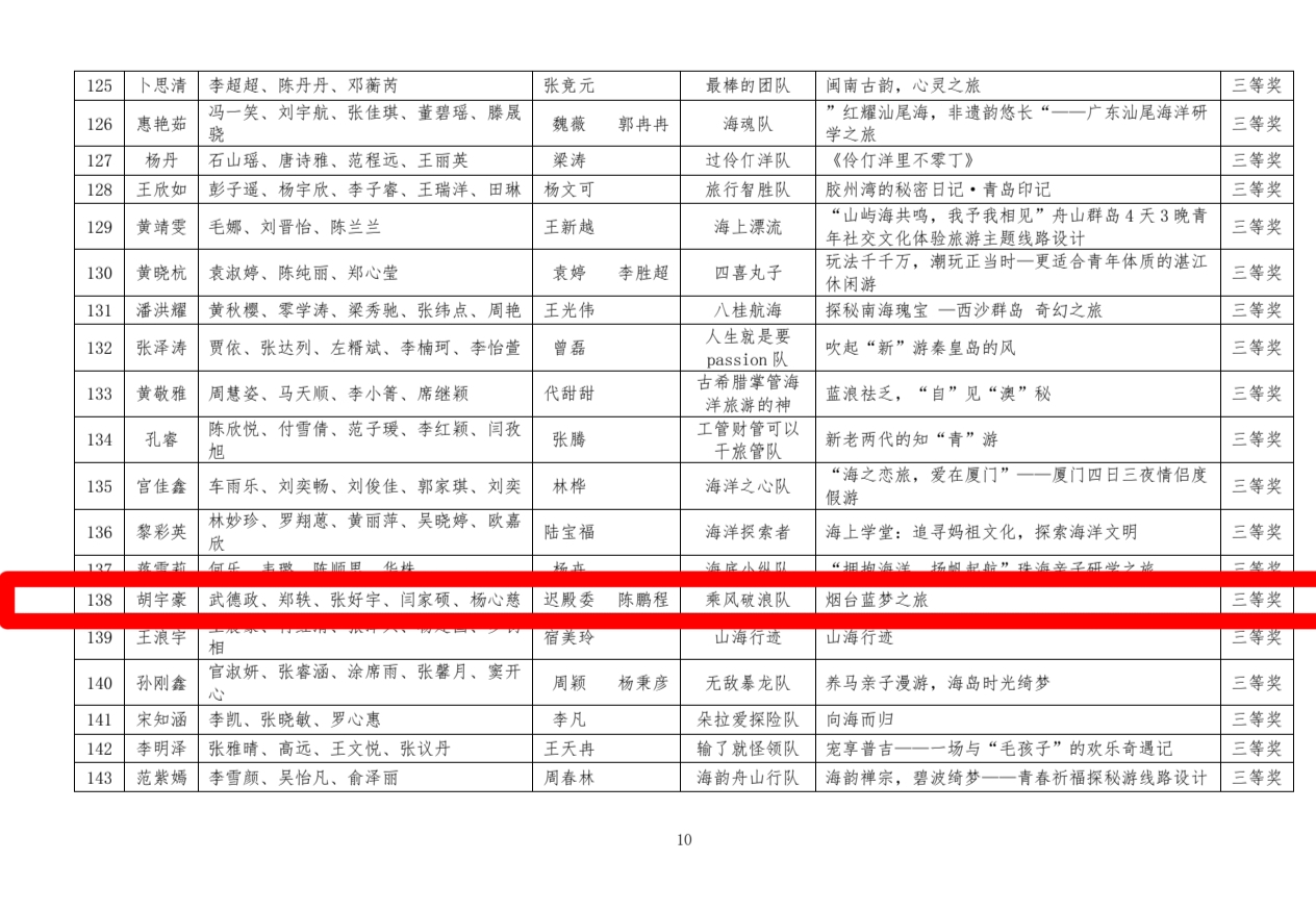 近日,2024年全国大学生海洋旅游创意设计大赛圆满收官。我院“乘风破浪队”携作品“烟台蓝梦之旅”于众多参赛团队中崭露头角,荣获全国三等奖。