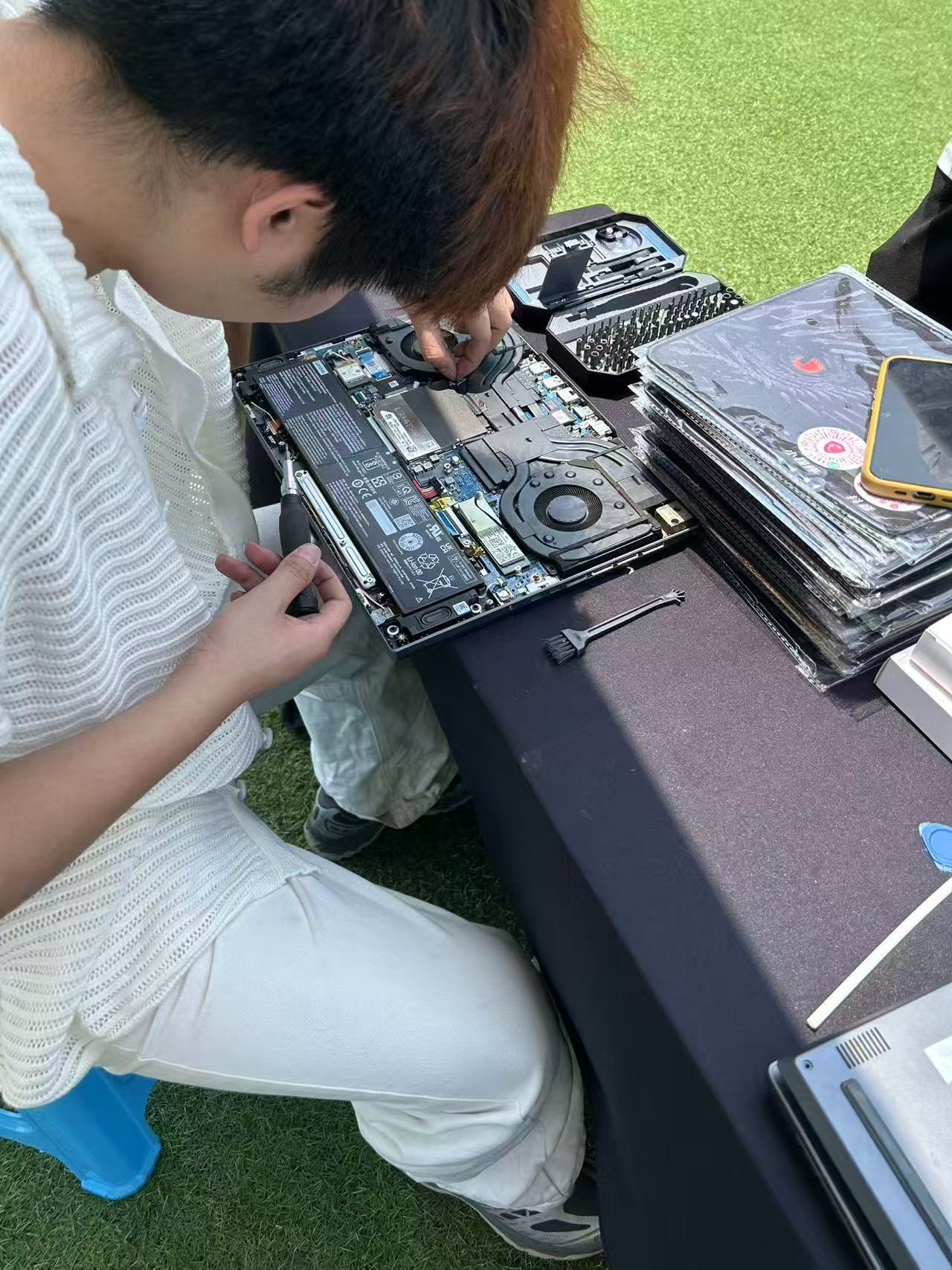 活动伊始,志愿者们提前布置好现场,备齐工具,以饱满的热情迎接师生们的到来。活动中,前来寻求帮助的师生有序排队,志愿者们根据需求合理分工,互相配合,为大家解决电脑硬件和软件两方面的问题,包括硬件清洁检测、系统安装优化、软件装卸、故障排除及使用指导等。志愿者们积极了解问题并提供解决方案,同时分享了电脑优化设置、提升运行效率、保障数据安全等实用技巧,帮助大家更高效地利用电脑资源。活动现场氛围热烈,志愿者们专注投入、耐心沟通,用专业技能为大家排忧解难。