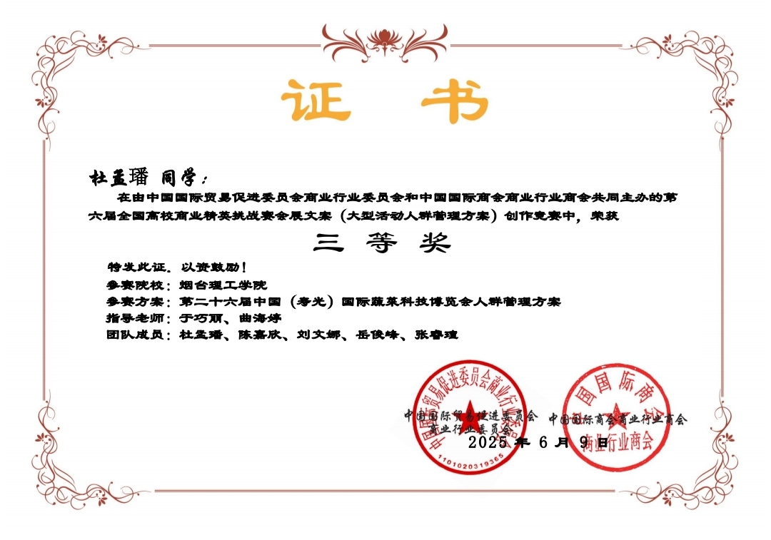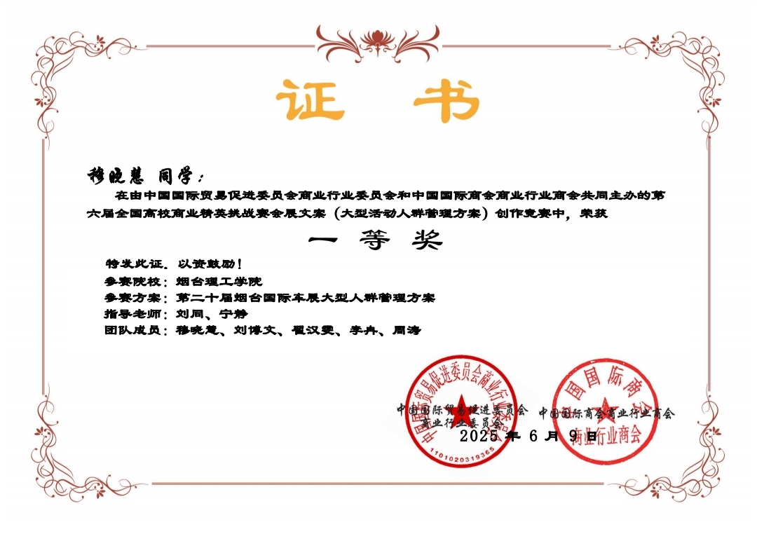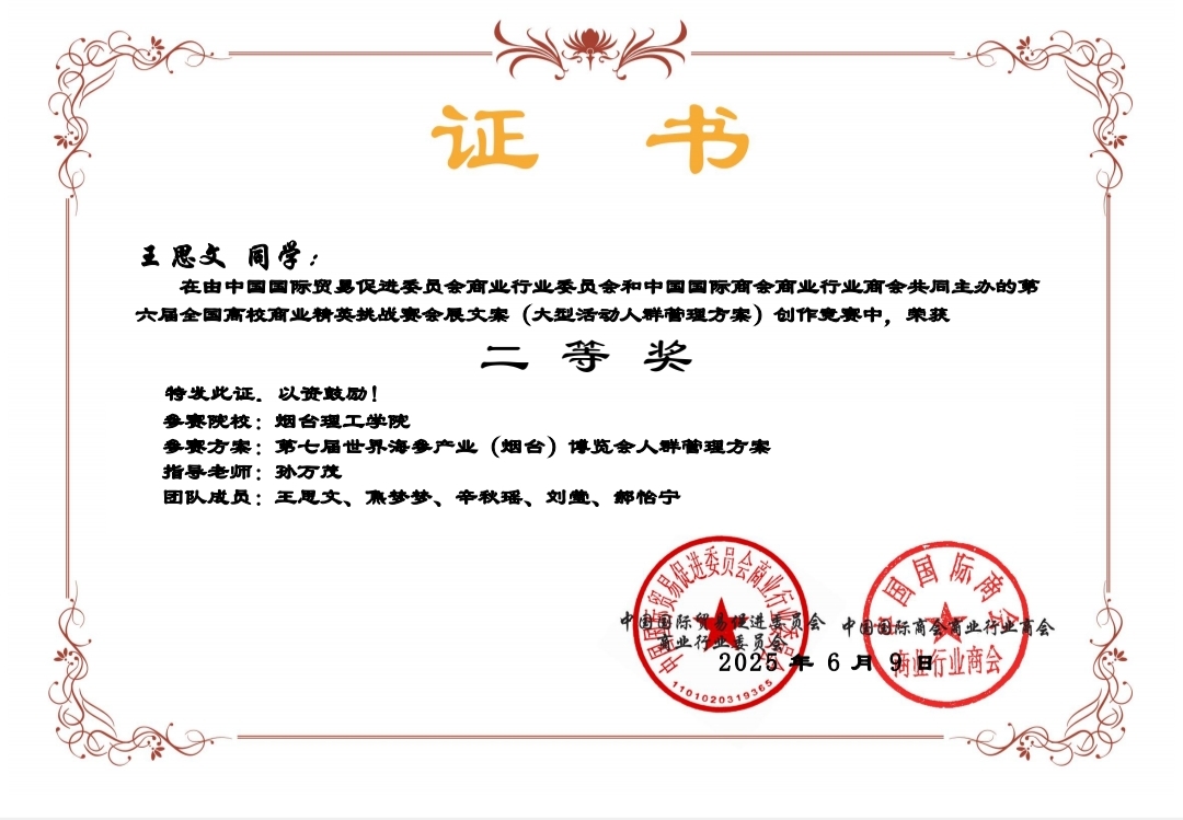 在激烈角逐中,外国语学院派出的三支参赛团队表现优异,分别荣获国家一等奖1项、二等奖1项、三等奖1项的佳绩。学院领导在学生备赛过程中高度重视,精心部署,商务英语系全力配合,通力协作,全力做好参赛方案设计、技术和各种保障支持。教师指导团队(刘同、宁静、于巧丽、曲海婷、孙万茂)团结协作、细致指导,为参赛学生提供了坚强保障。参赛同学们不畏挑战、全情投入,展现出卓越的综合素养与创新能力。