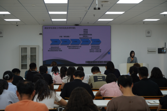 为稳步推进我校新学期学生工作,进一步提高辅导员工作效率与育人实效,为新学期开新局、起好步,学生工作处于8月27日下午在智慧教室举办凝“新”聚力,共话成长辅导员交流会,校长助理杜娟出席会议,各学院党总支副书记、全体辅导员参会。