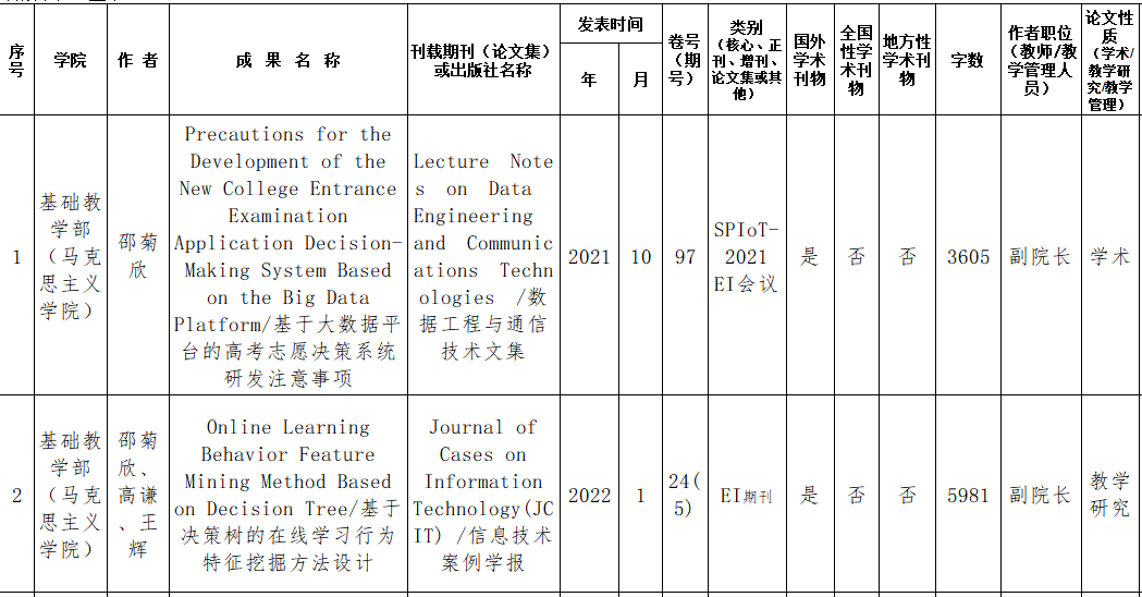 基础教学部(马克思主义学院)2021年、2022年自然科学理论成果