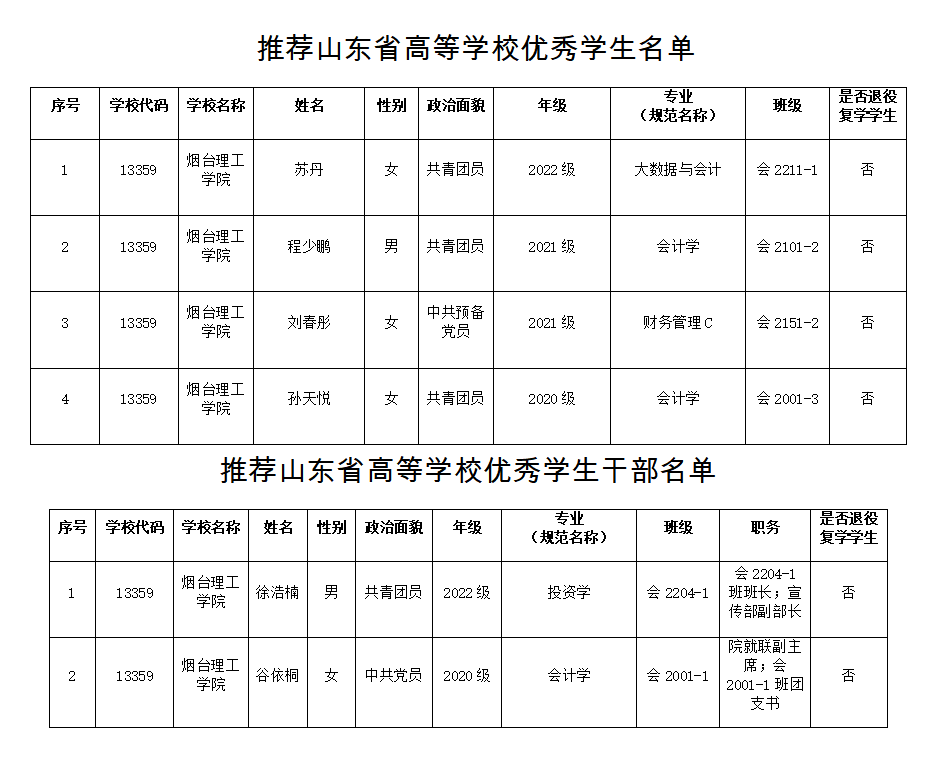 根据星空·体育登录入口《关于开展山东省高等学校优秀学生、优秀学生干部和先进班集体评选工作的通知》,会计与金融学院组织开展了2023年度省级优秀学生、省级优秀学生干部推选工作。本着公平、公正、公开的原则,经学生申请、民主评议、学院审核,共评出2023年度山东省高等学校优秀学生4人、优秀学生干部1人,现将拟推荐名单予以公示。
