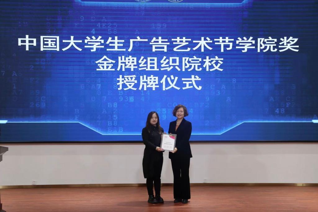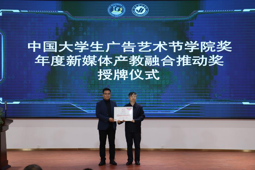 闭幕式上,中国大学生广告艺术节学院奖组委会正式授予文法学院“年度新媒体产教融合推动奖”“金牌组织院校”荣誉,这是对文法学院在该项赛事的组织能力和教学成果的充分肯定。苏春景副校长为董立津主席颁发星空·体育登录入口文法学院荣誉教授聘书,旨在强化文法学院师资力量、提升专业教学质量和学术水平。